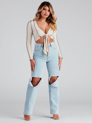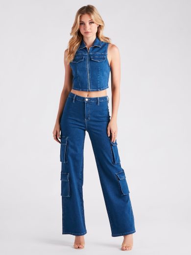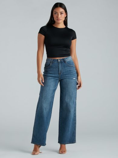 Cheap Store Online Wholesale Cutie In Charge Wide Leg Denim Pants