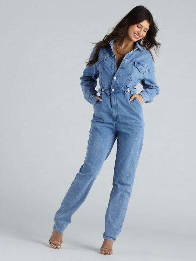 Cheap Outlet Shop Store Weekend Style Long Sleeve Denim Jumpsuit