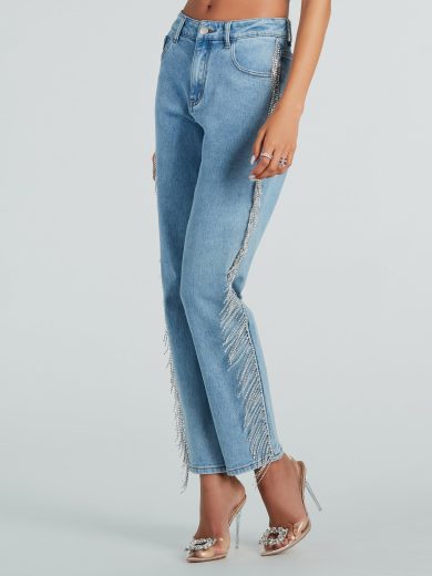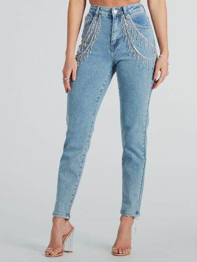 Discounts Up To 90% Off She Glistens High-Rise Rhinestone Denim Jeans
