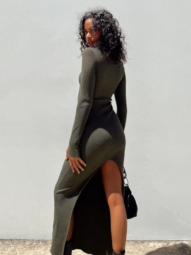 Cheap Wholesale High Quality Karim Ribbed Knit Maxi Dress Khaki