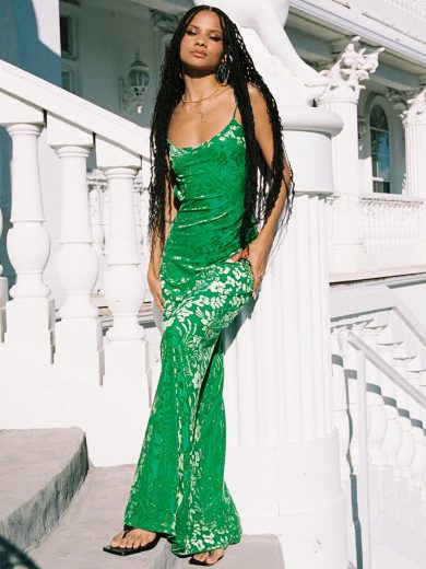 Cheap Discounted Online Sale Burn Out Velvet Maxi Dress Green