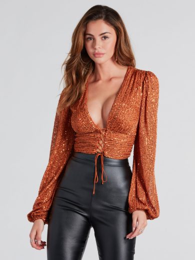Outlet Sale With Discounts She's A Vision Sequin Lace-Up Crop Top