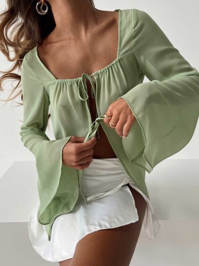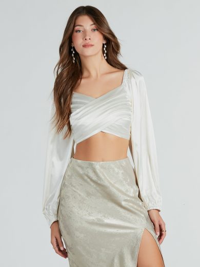 Cheapest Onlinestore Effortlessly Fab Satin Long Sleeve Cropped Blouse