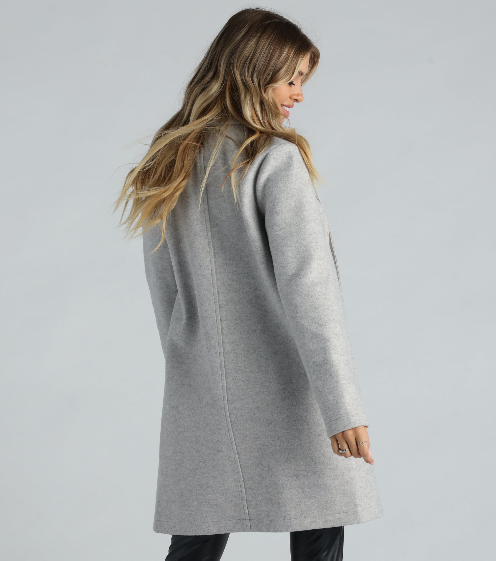 Look fashionable in any season in this faux wool trench coat! The classic coat features long sleeves, a lapel collar neckline, an open front design, hidden lined side pockets for keeping your hands warm, and a longline silhouette on smooth and soft faux wool fabric. Complete the look with boots for a day or evening downtown!