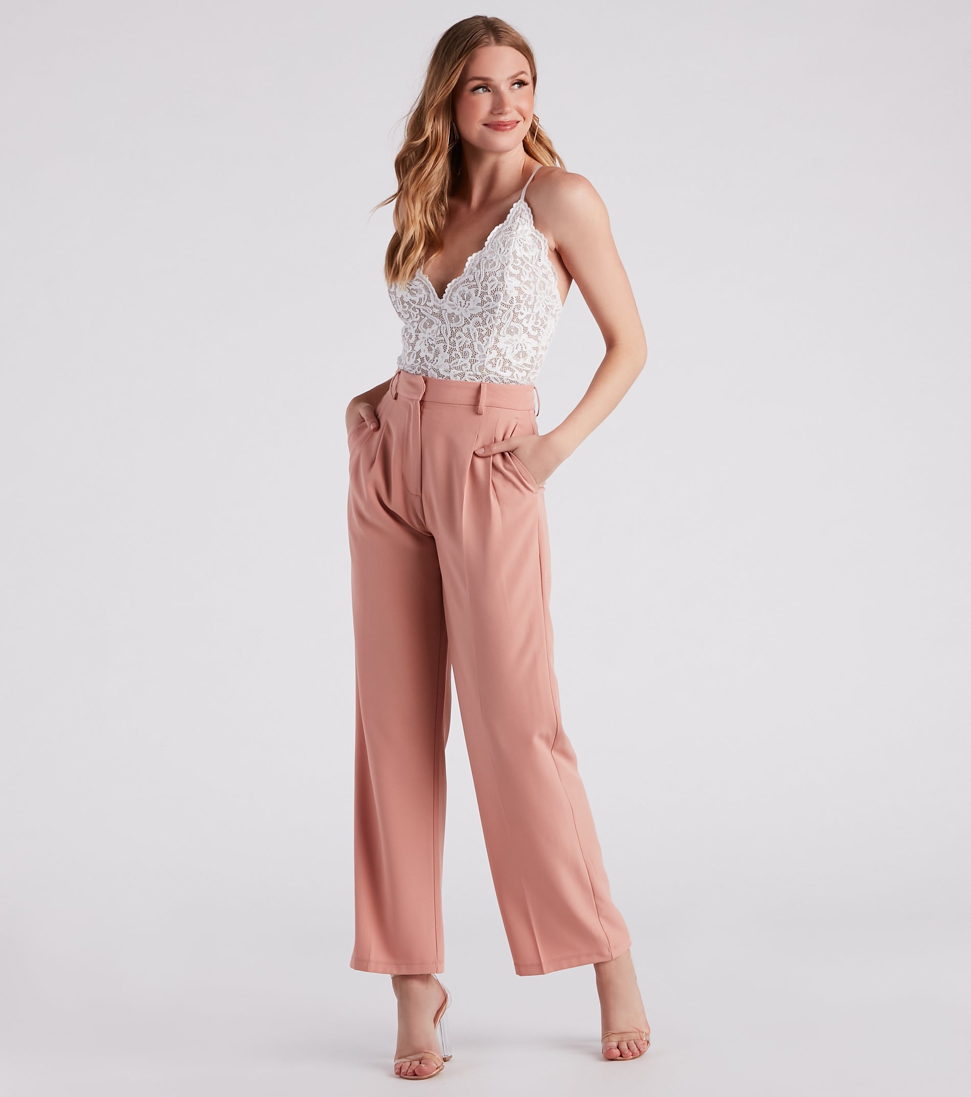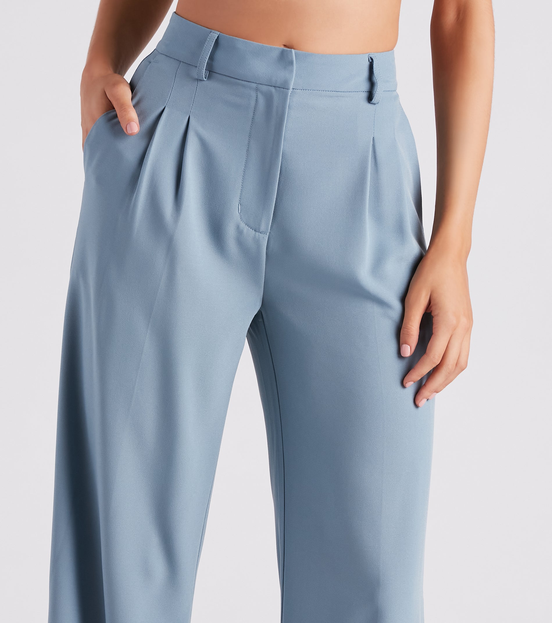 - Side pockets, front pleating