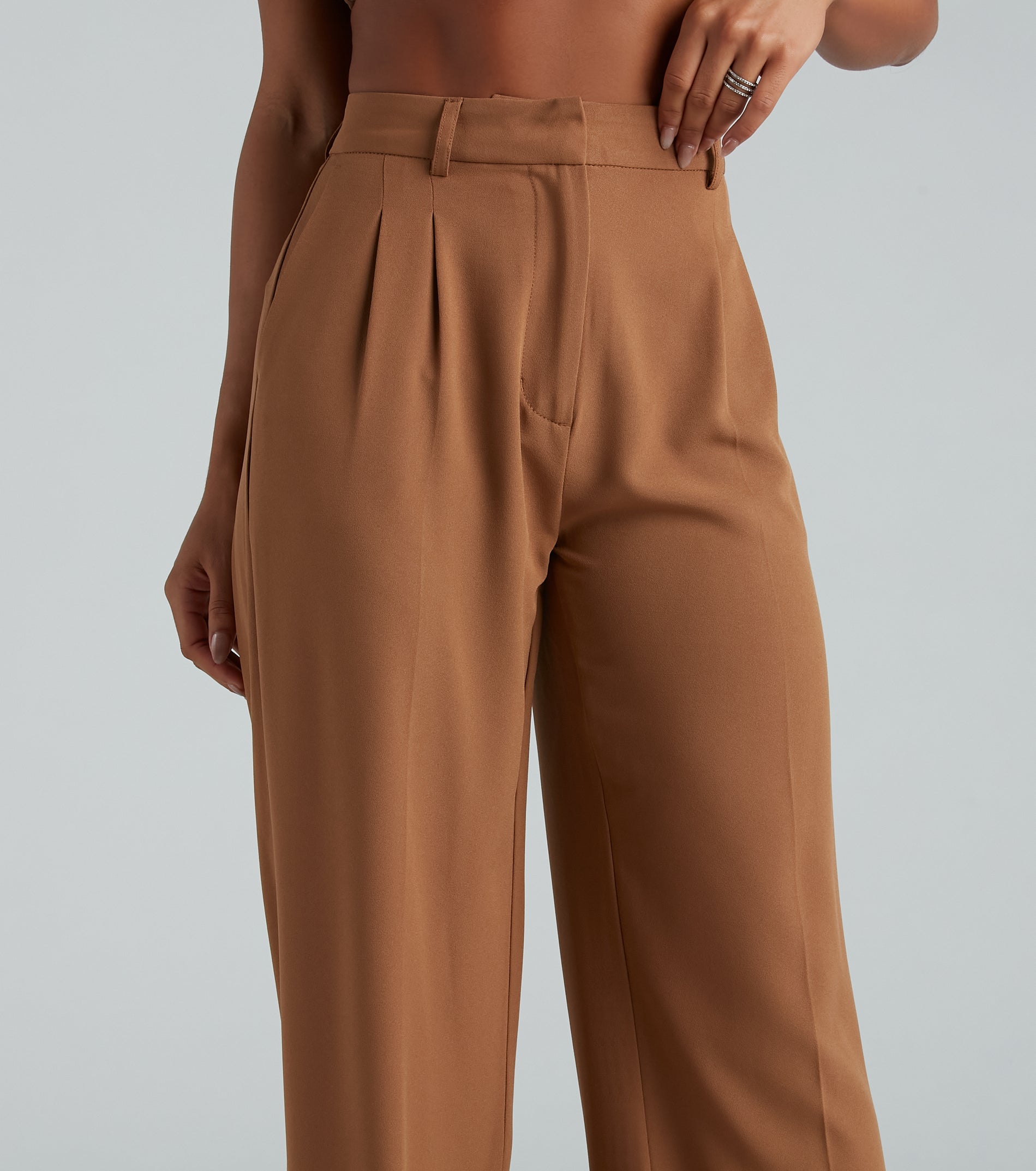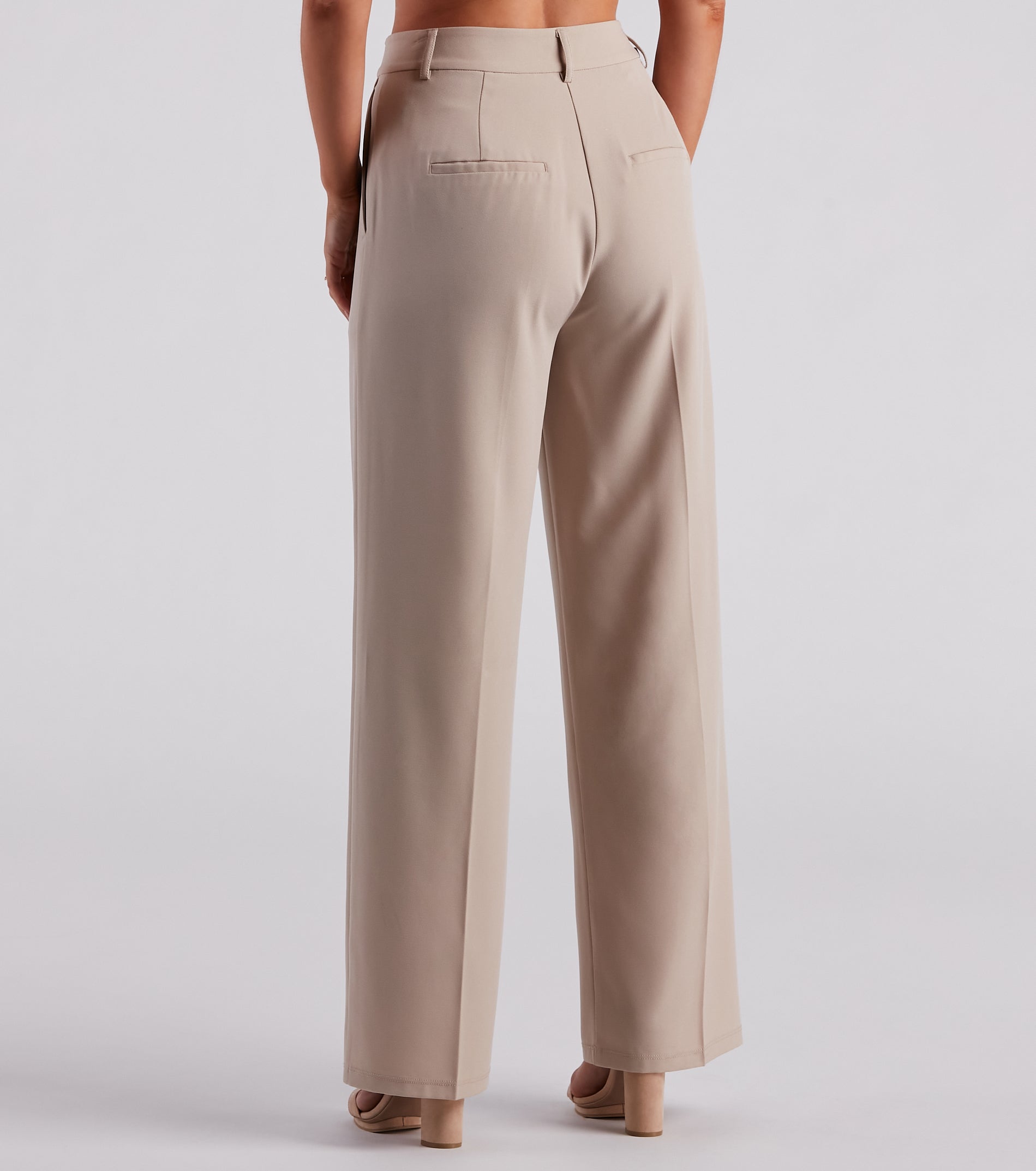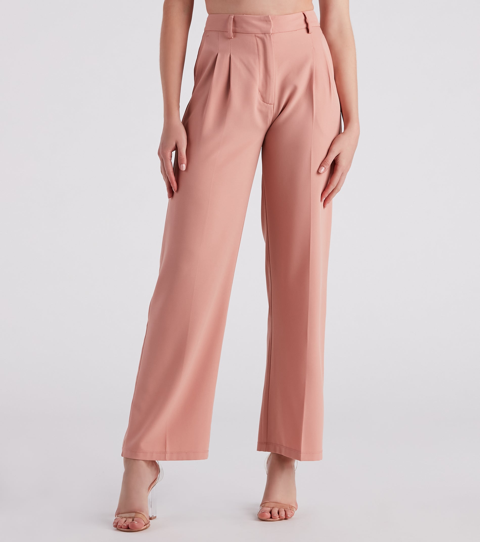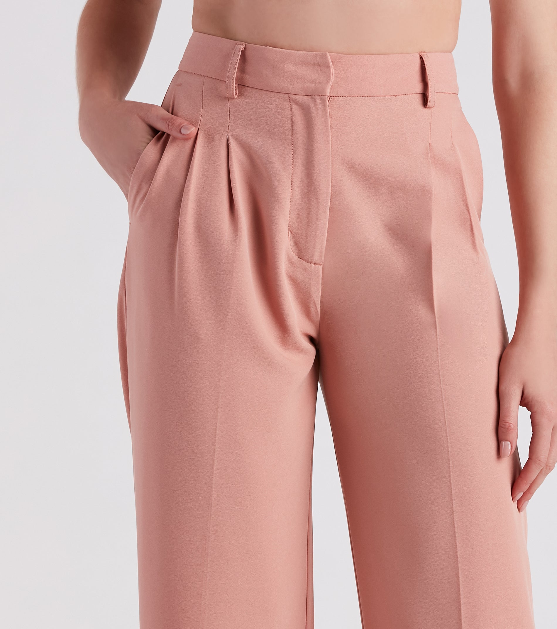 Effortlessly laidback yet chic, these 90 ‘s-inspired trouser pants feature a high-rise waist, front hidden zipper and hook-eye closure, belt loop accents, side pockets, front pleating, and a boyfriend-style leg on crepe woven fabric. Complete the look in a blouse and heels.
