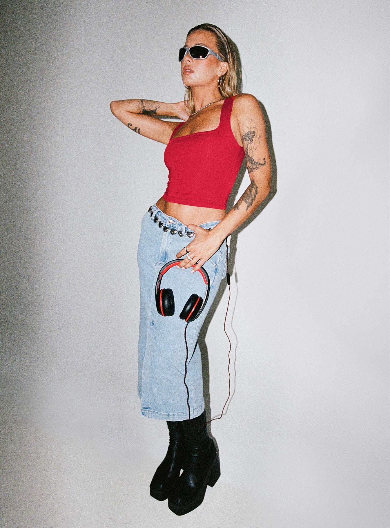 - Denim midi skirt