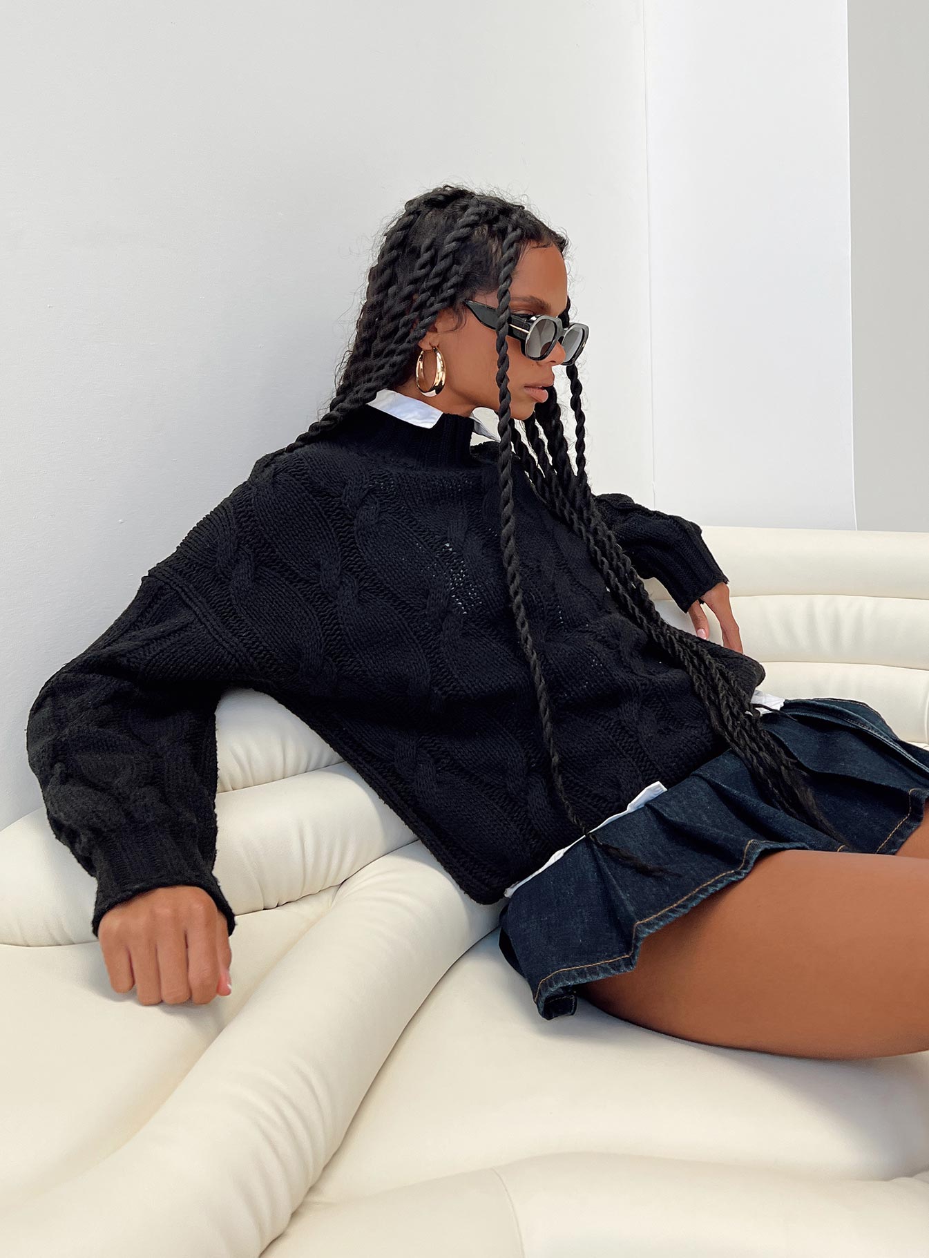 - Cable knit sweater