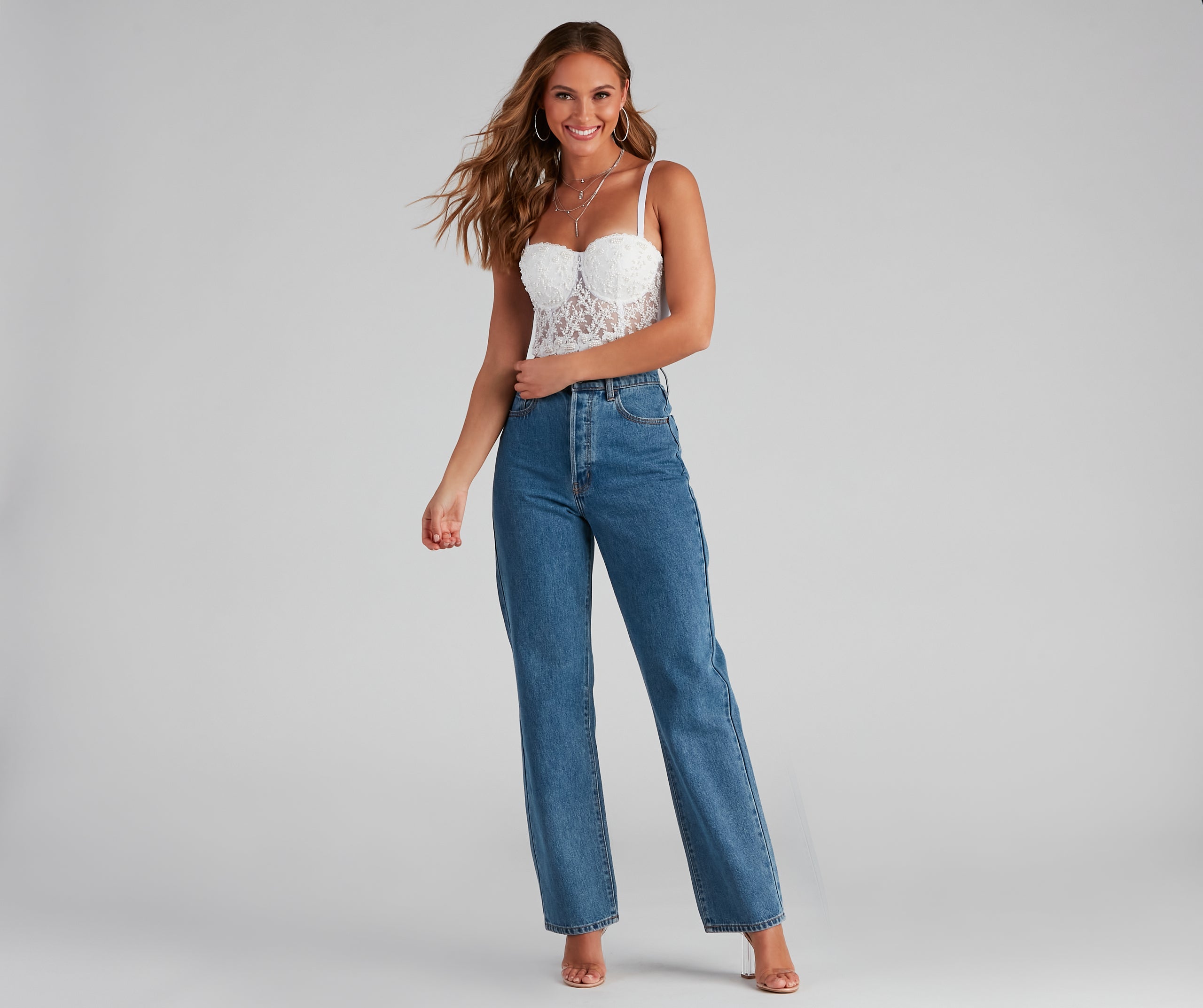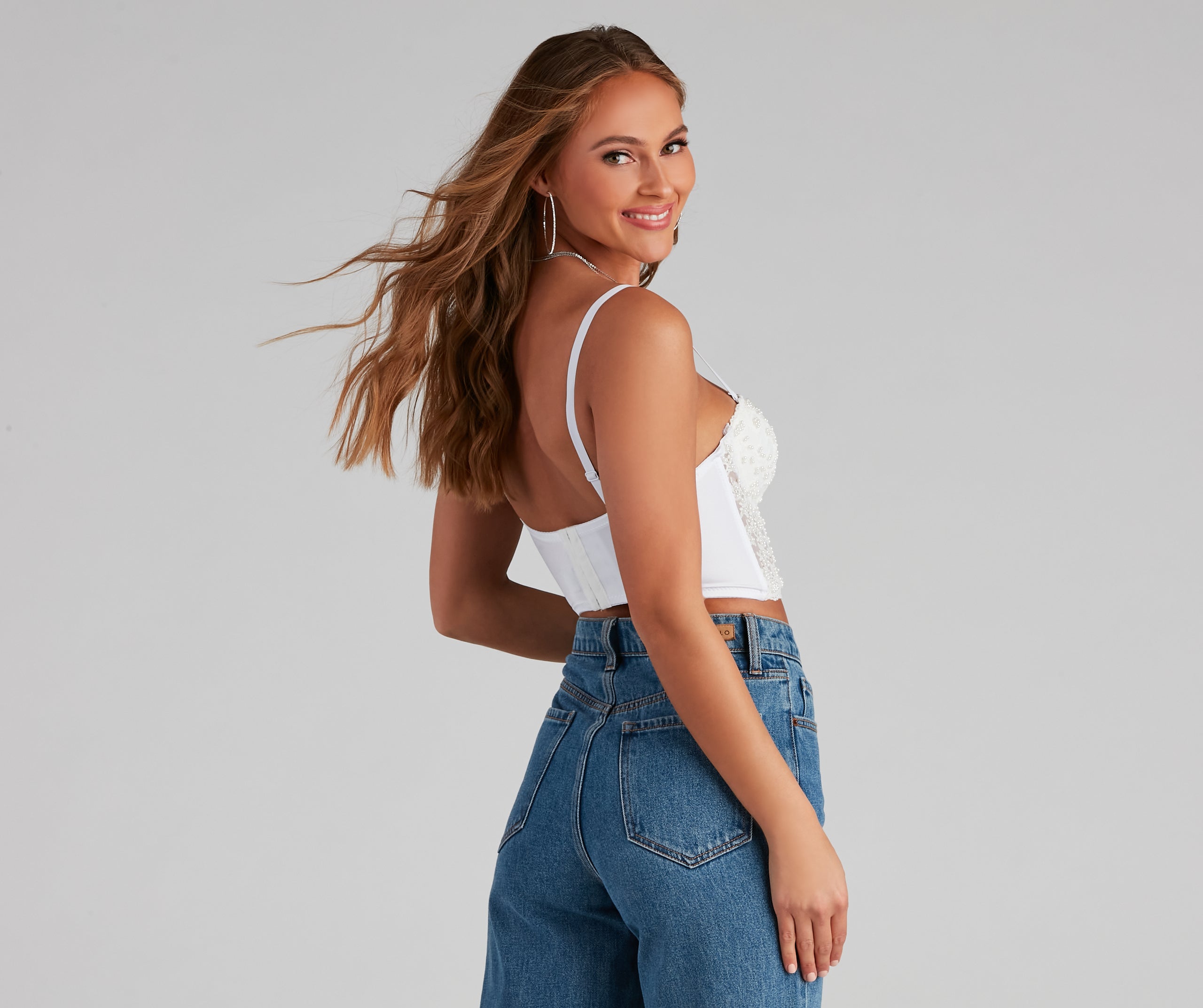 This bustier top is accented with pretty faux pearls to dress up your favorite bottoms! This beautiful bustier features a sweetheart neckline with faux pearls that are hand-beaded and stitched on top of the lace. The strapless corset bodice is designed with underwire padded bra cups and adjustable straps that are removable for styling versatility. Pair this cropped bustier top with a high waist mini skirt and shimmering hoop earrings for a gorgeous going-out look.