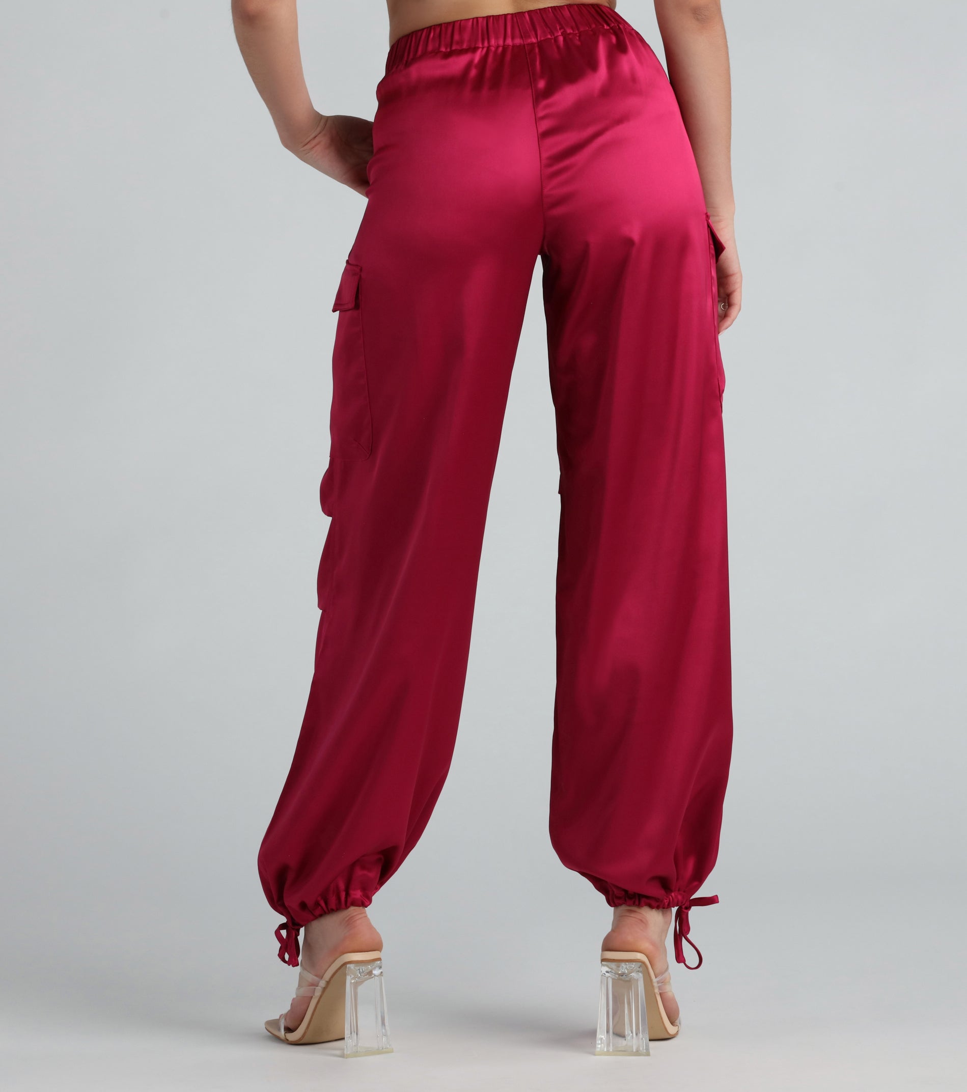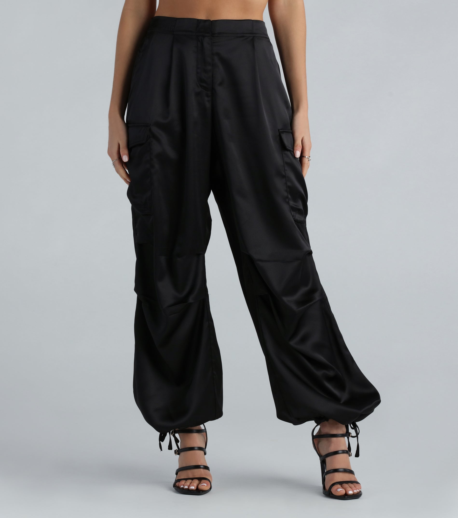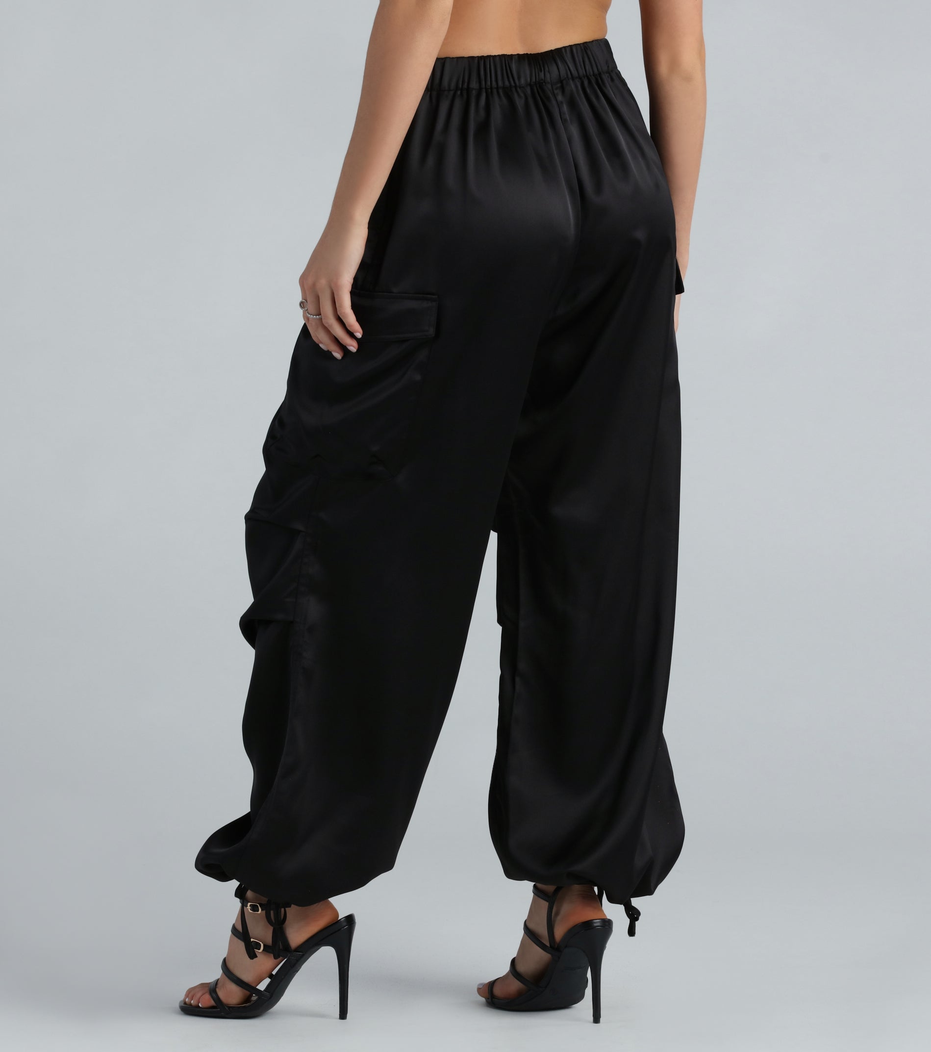 Buy Quality Pulling Strings Satin High-Rise Cargo Pants