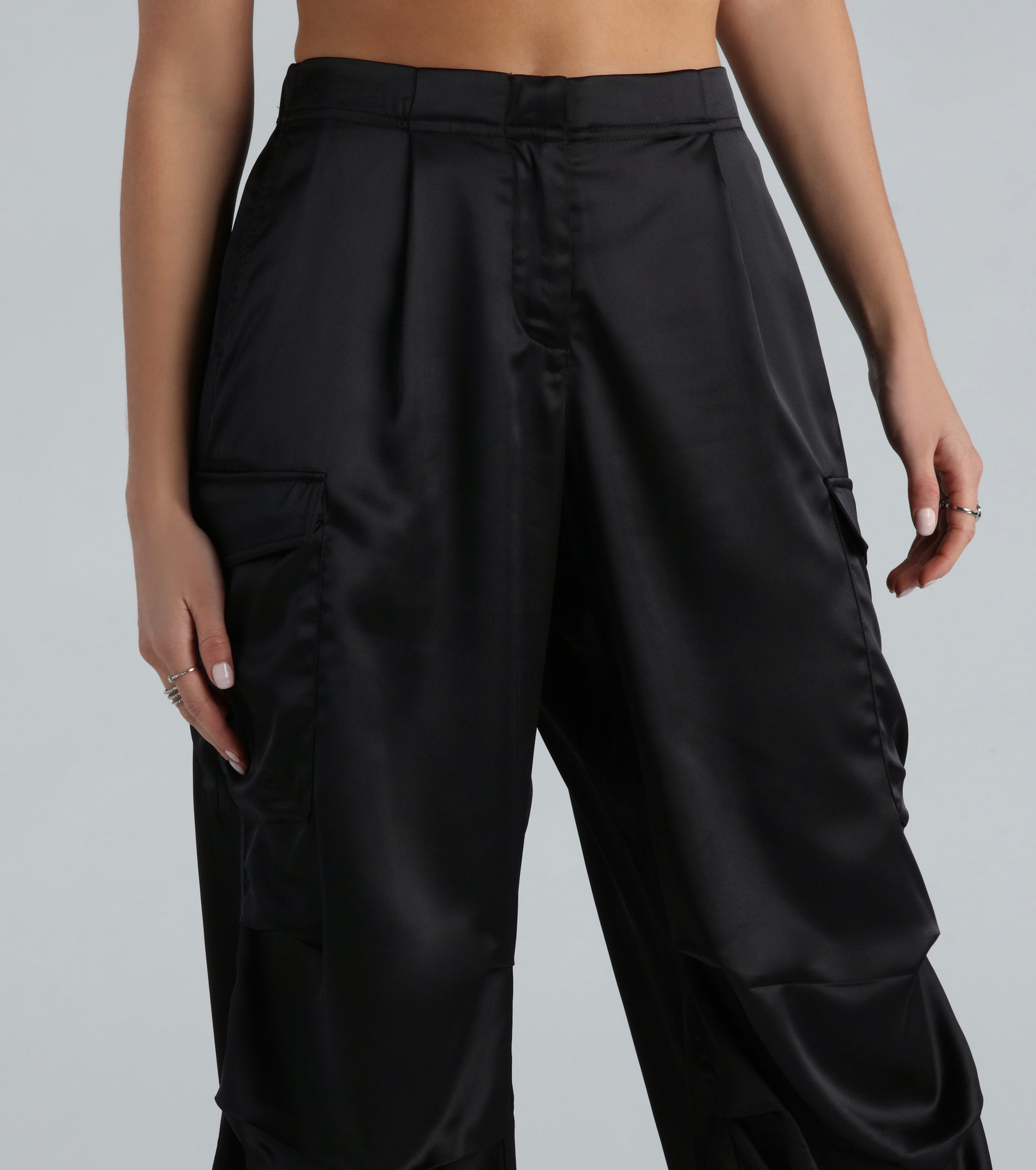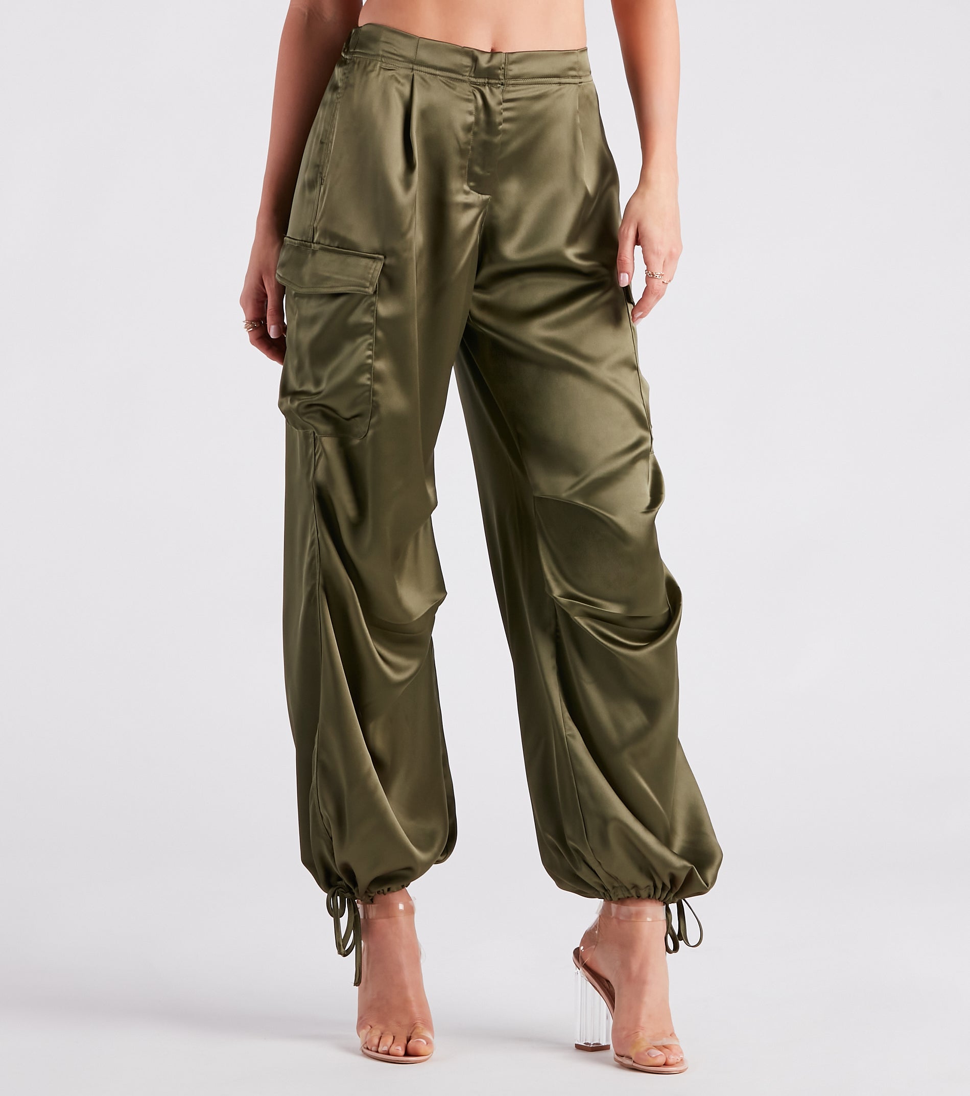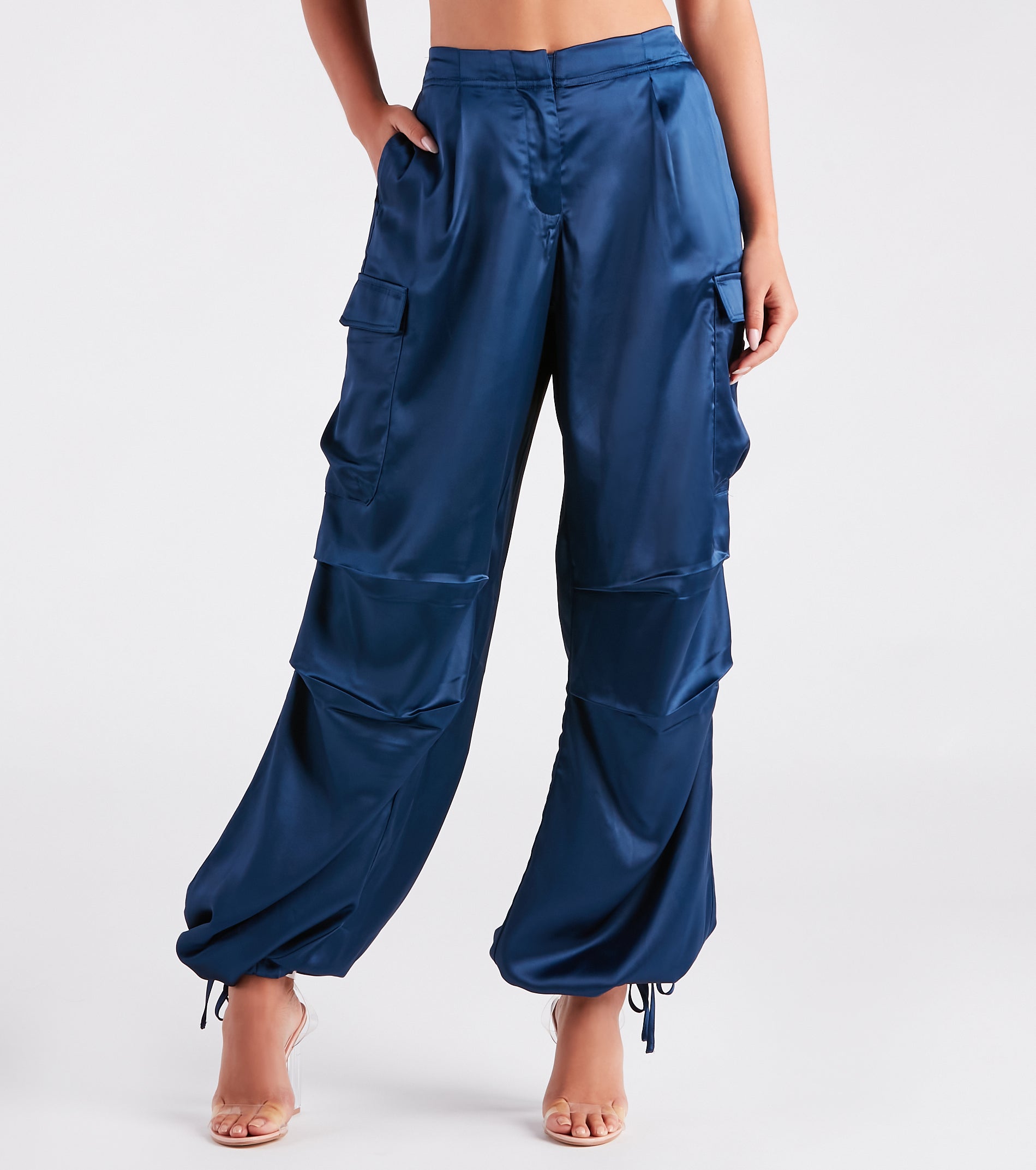 Buy Quality Pulling Strings Satin High-Rise Cargo Pants