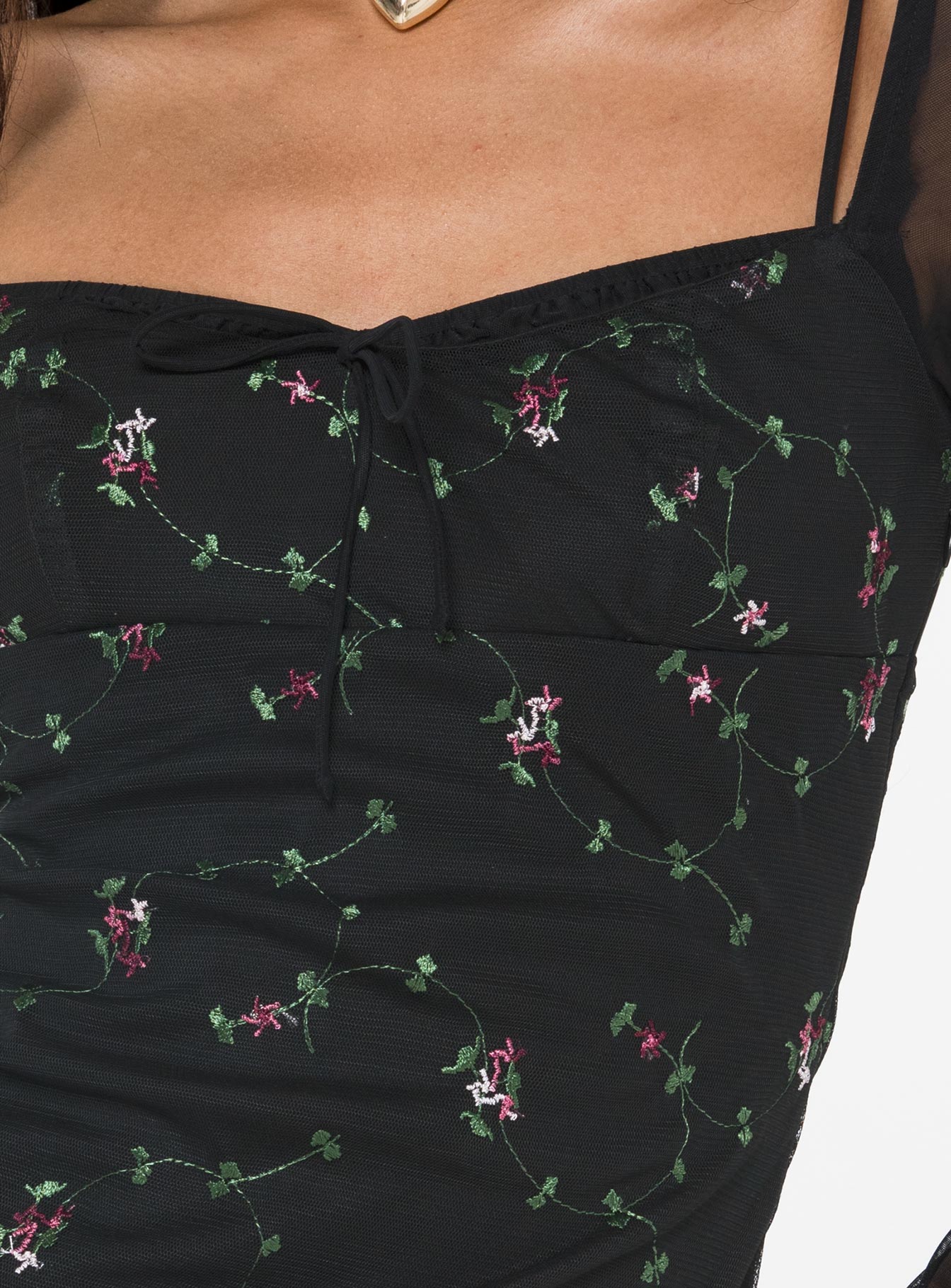 • Long sleeve dress, slim fitting, mesh material, floral print