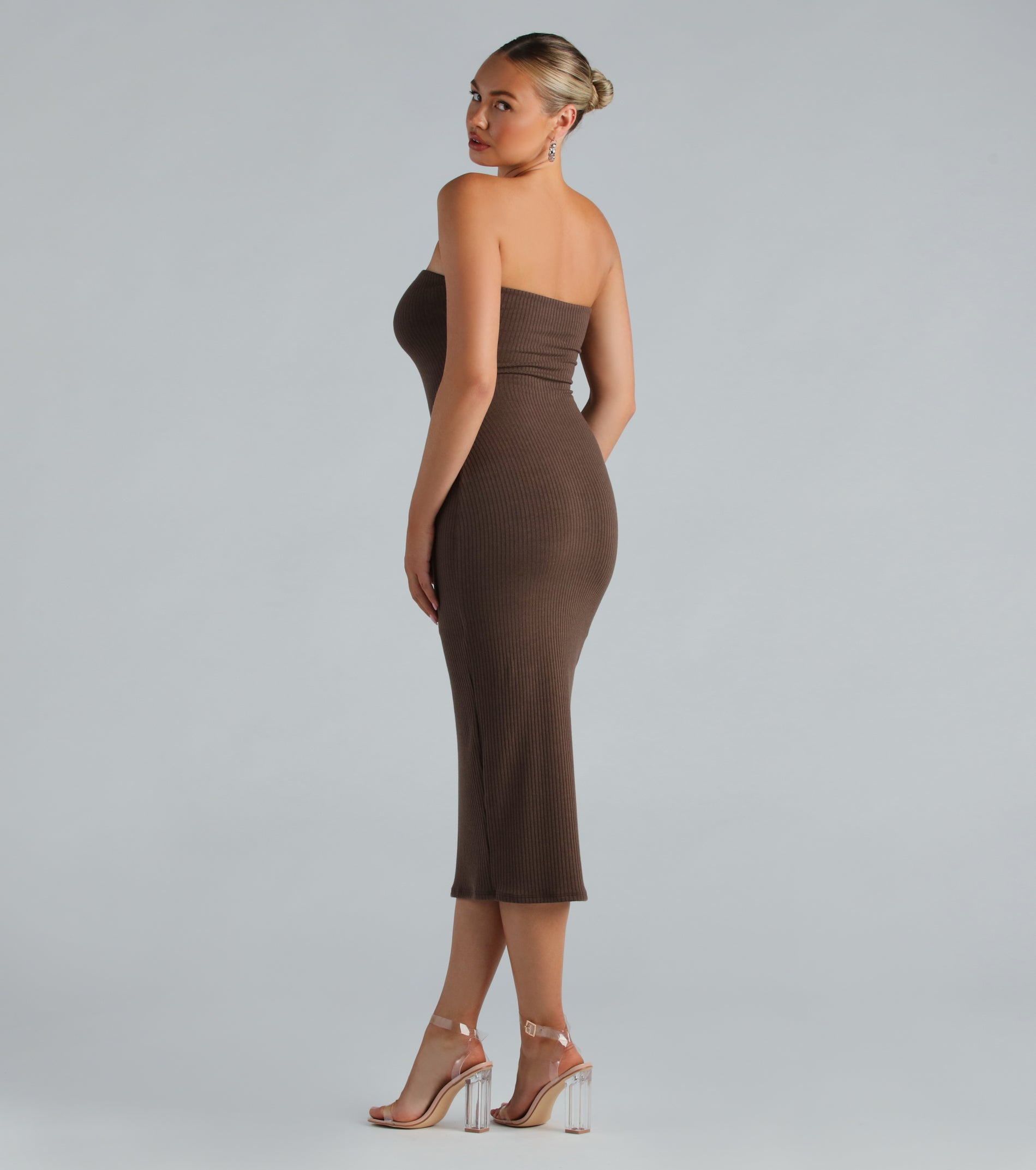 Sale 10% Off She’s The Main Rib Knit Strapless Midi Dress