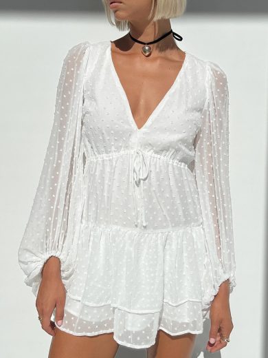 Wholesale With High Quality Dialla Long Sleeve Mini Dress White